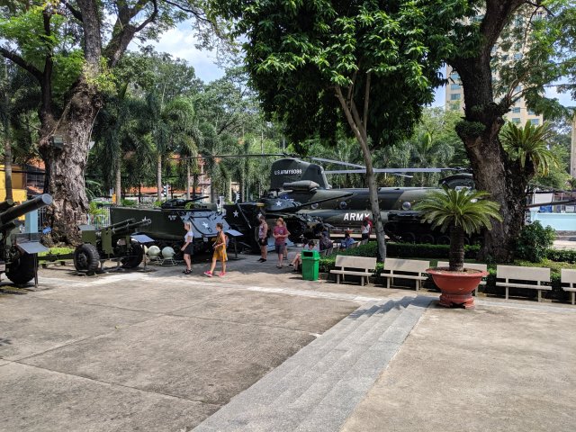 The War Remnants Museum is located in the heart of Ho Chi Minh City. It has a large outer courtyard filled with American armaments abandoned after the war: airplanes, a helicopter, tanks, artillery, bomb casings. The 9-year-old in me was delighted, but it’s hard to read about hundreds of tanks, thousands of artillery pieces and bulldozers, and hundreds of thousands of rifles without wondering how much they cost. How many teachers, nurses and social workers we could have hired with that money, how many schools and bridges we could have built with that steel?