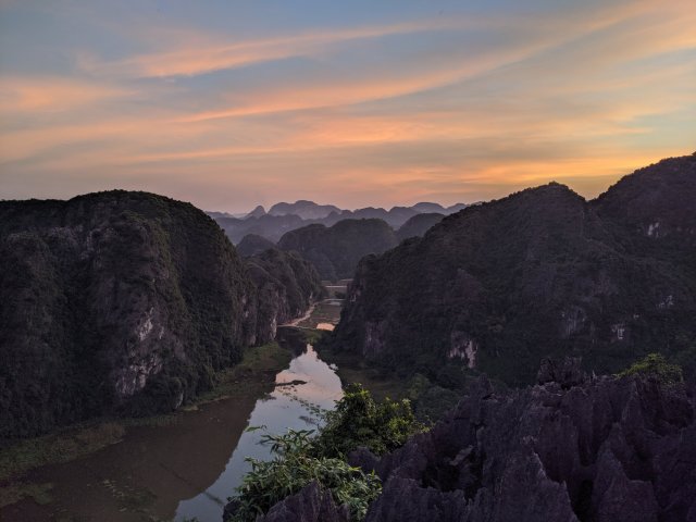 Ninh Bình Province lies 100 km south of Hanoi. It’s one of the gems of Vietnam, with magnificent limestone pillars rising abruptly from the landscape. I was there for one full day, and happened to get perfect weather. There’s not much of a story to tell here, just some great pictures.