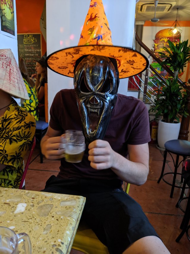 This hostel, the Old Quarter View, is one of the nicest I’ve stayed at. It’s clean and quiet, has a good social vibe, and has the nicest bathrooms I’ve seen the whole trip. And of course, they also had a Halloween party.