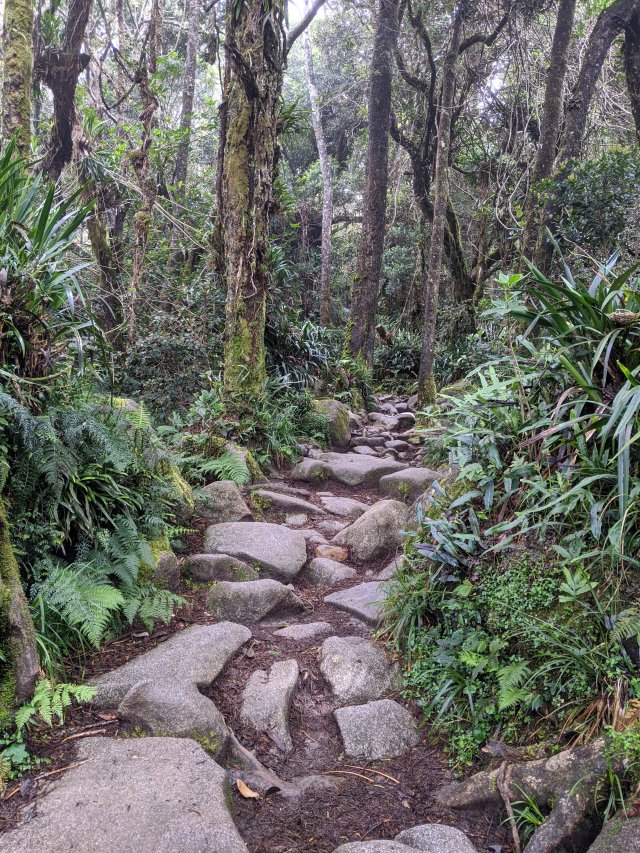 This time I really tried to be patient and stick with the group, but with 2.5 km left to go I finally got sick of their exhausted pace and went down to wait for them at the gate. Holding myself back for safety on the steep slippery rocks that last chunk took me about 50 minutes; it was another 45 before they appeared. I will forever be grateful to Sylvester for trusting me to go do my own thing.