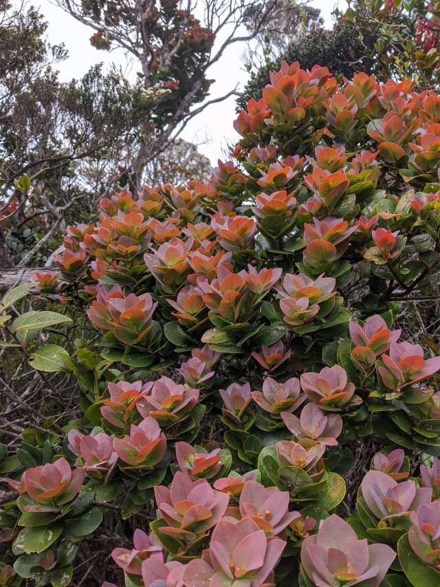 It was cold at the summit, just a little below freezing. Not much compared to a northern mountain to be sure, but for the second time in a week I was grateful for my warm layers. The cloud cover had returned as we climbed, and instead of warming rays the day brought only a cruel wind and bitter freezing mist. I gobbled down a snickers bar and got the heck off that ridge, snapping pictures as I went.